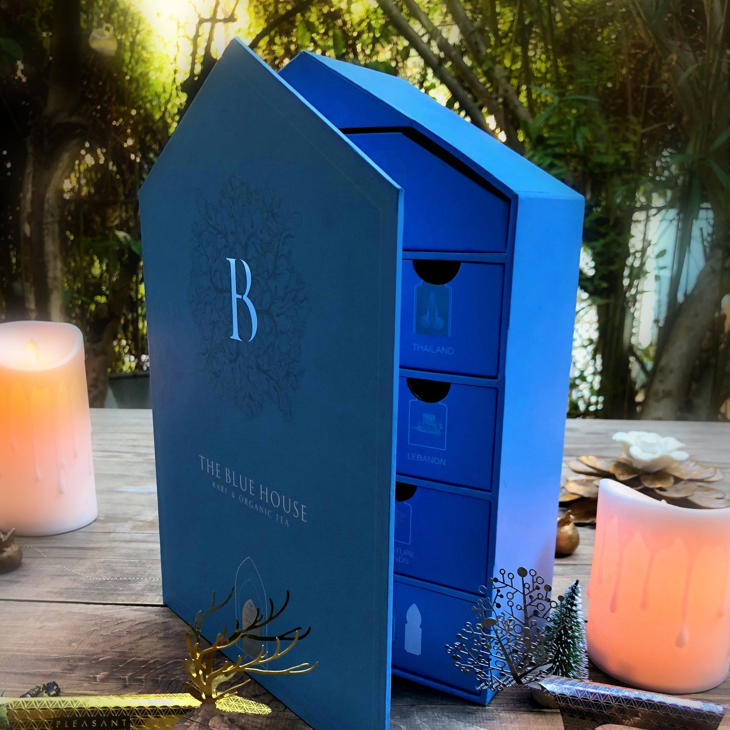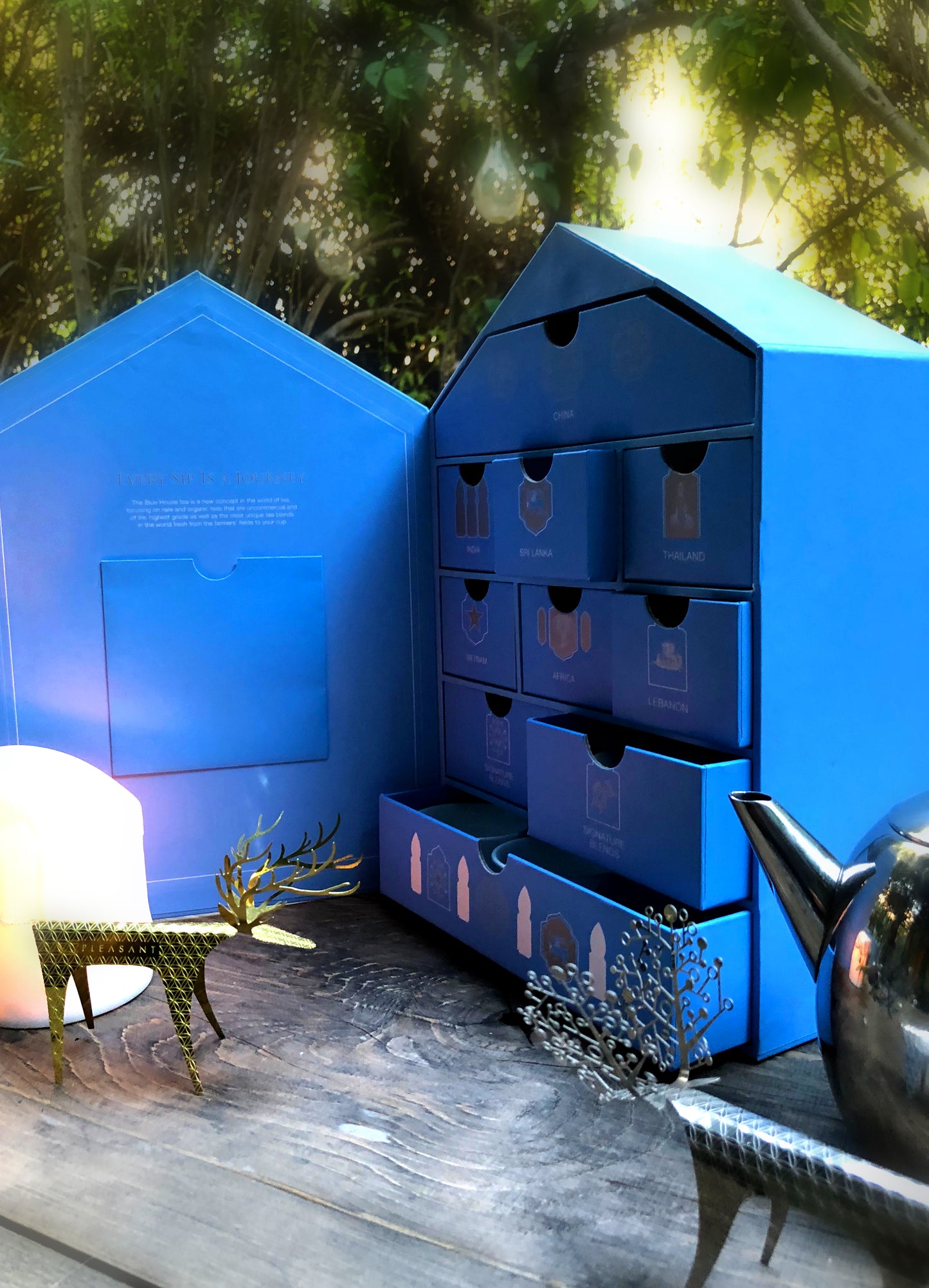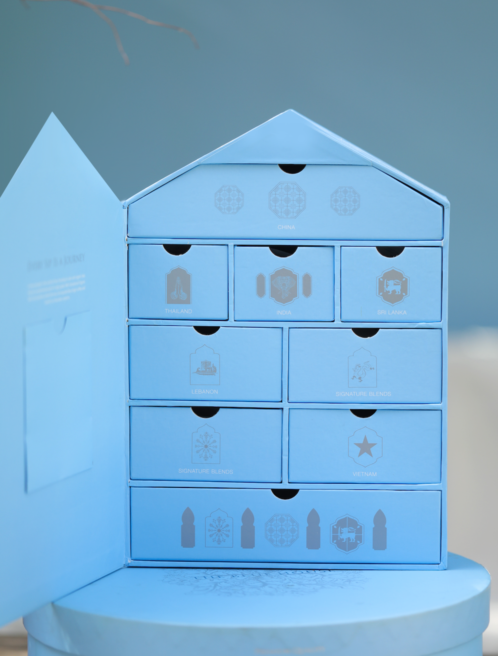 Embark on a journey of flavors with every sip! Our exclusive Blue House-shaped box unlocks a world of tea treasures, featuring drawers filled with delightful selections from various countries. Every detail is meticulously crafted to create the perfect gift for tea enthusiasts and luxury connoisseurs alike. Personalize the experience by adding a special message within the pockets of the house, making it a truly memorable gift. This enchanting travel kit will transport you around the globe, all while showcasing our stunning Blue design!